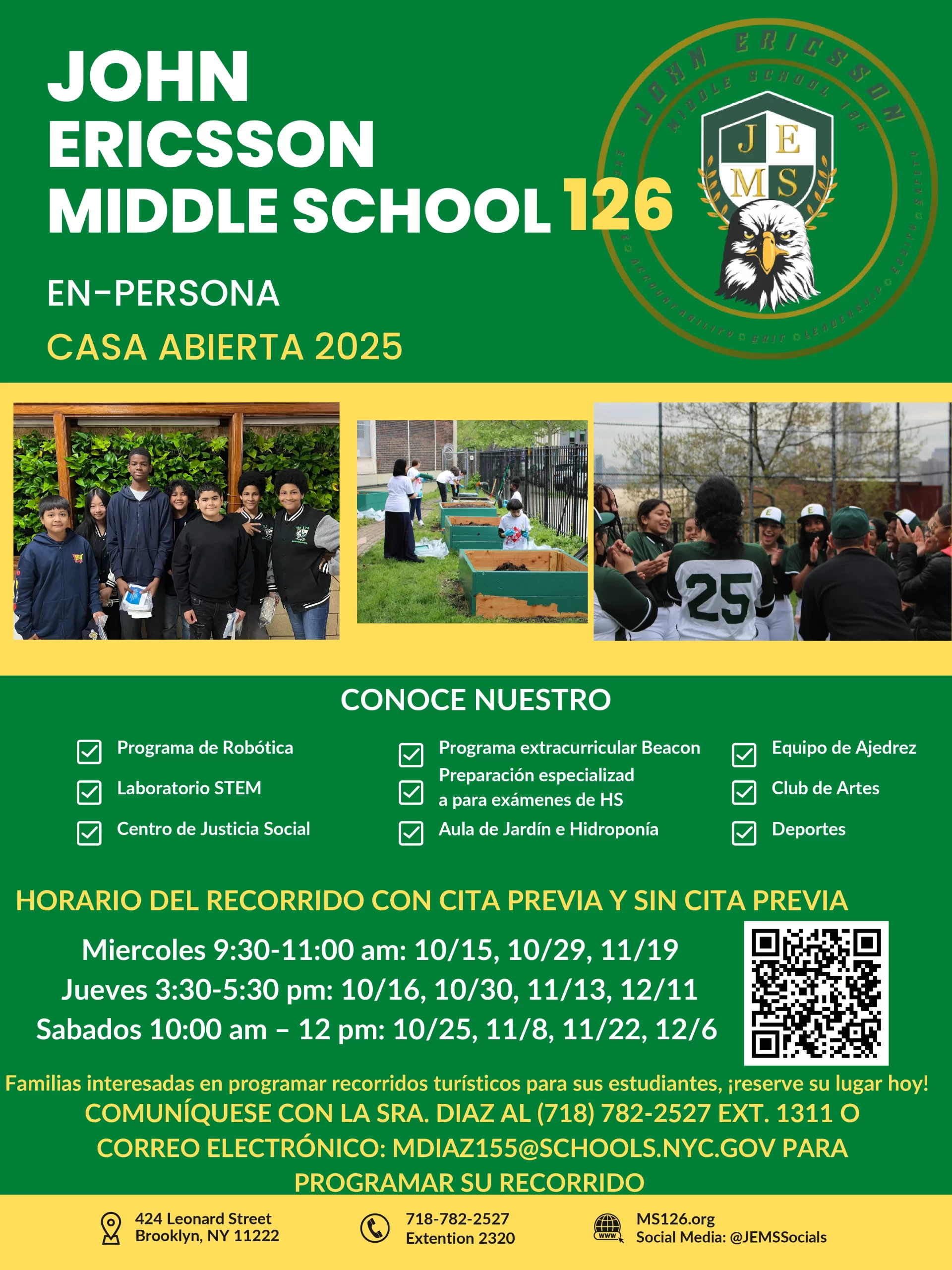 The mission of John Ericsson Middle School 126 is to ensure that every student develops the skills necessary to build a strong social and academic foundation creating productive and informed citizens who can communicate and collaborate in a diverse community. Our guiding principles include: